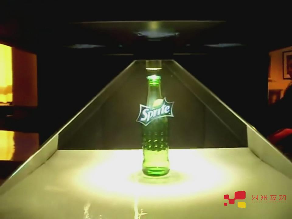 270度幻影成像是現(xiàn)在比較流行的展示形式,其利用鍍膜玻璃對光的折射和反射,將虛擬影像投射到成像空間里,形成一種空中成像的現(xiàn)象,能夠360度旋轉(zhuǎn)式的展示產(chǎn)品,成像高度大約在20多厘米,能夠給人一種真實的3D立體效果。