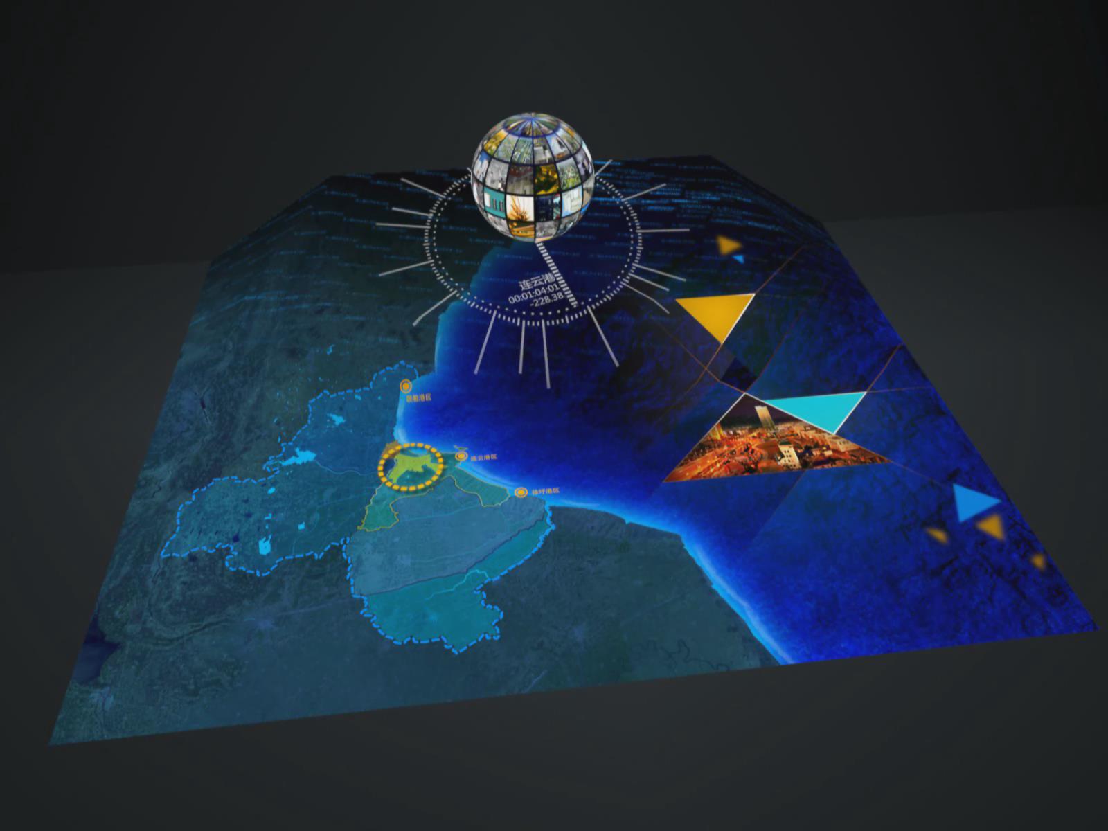 連云港經濟技術開發區位于連云港市東部城區,是1984年12月經國務院批準設立的首批國家級開發區,是連云港市外向型經濟的重要載體和建設國際性海濱城市的核心區域,是連云港市優質資源集中的區域和精華所在。通過投影沙盤展示了連云港經開區的發展變遷、地理位置,這種聲光電的投影展示方式,演示效果非常形象、生動。