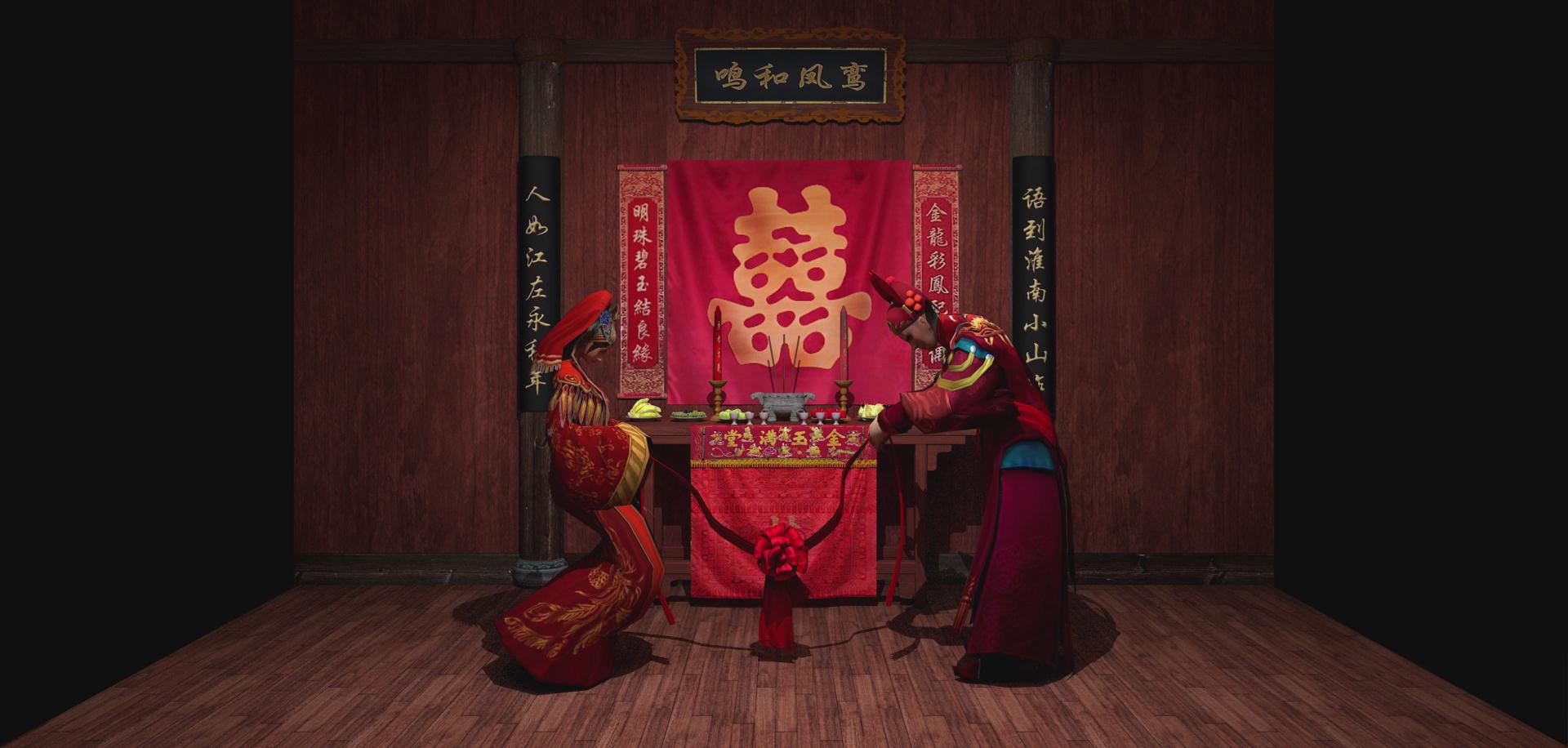 漢族先人認為黃昏是吉時,所以會在黃昏行娶妻之禮,因此夫妻結(jié)合的禮儀稱為“昏禮”,后來演化為婚禮。漢族人認為紅是吉祥的象征,所以傳統(tǒng)婚禮習俗總以大紅色烘托著喜慶、熱烈的氣氛。吉祥、祝福、孝敬成為婚禮上的主旨,幾乎婚禮中的每一項禮儀都滲透著中國人的哲學思想。影片描述了漢族傳統(tǒng)婚俗拜堂過程,先是燃炮后是拜堂,體現(xiàn)了中國傳統(tǒng)文化的精髓。